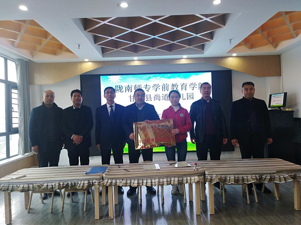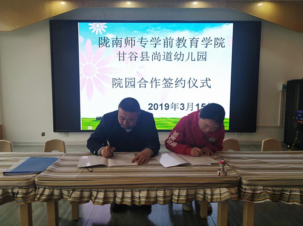 3月15日下午,太阳成集团tyc与甘谷尚道幼儿园教育实践基地挂牌签约仪式在尚道幼儿园举行。太阳成集团tyc经理王小会和幼儿园负责人一起签订了《合作共建教育实践基地协议书》并挂牌。