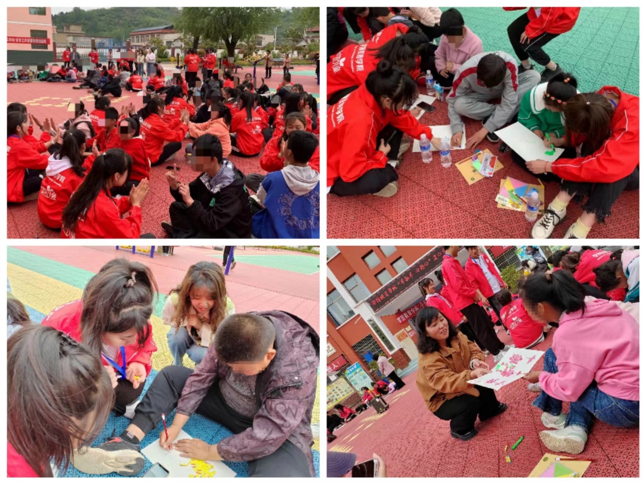 激动人心的舞蹈环节结束了,接下来解释我们小朋友们最喜欢的游戏环节了,同学们陪小朋友们一起玩拍手游戏、一起画画、一起聊天、分享日常、讲故事……她们的脸上洋溢着幸福的笑容,心中怀揣着希望,脸上有笑容。