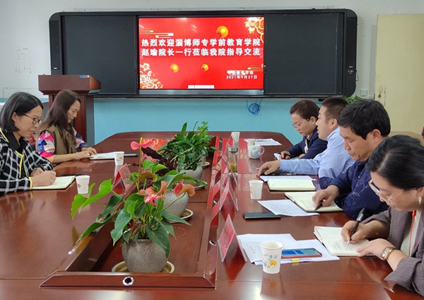 927,淄博师范高等专科公司太阳成集团tyc经理赵瑜一行来公司考察交流。公司王小会经理、李霞书记和公司领导班子一起陪同考察学前教育专业实训室、阅览室,随后就学前教育专业建设与公司管理的各个层面座谈交流,座谈会由王小会主持。