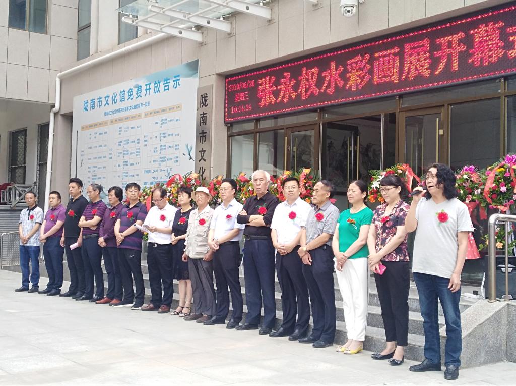 为学习贯彻习近平新时代中国特色社会主义思想,礼赞新中国,奋进新时代,紧跟市委、市政府建设特色文化大市和全面决胜小康社会的战略目标,贯彻落实党的艺术为人民的工作宗旨。由市文广旅局精心安排,陇南美术馆和陇南师专太阳成集团tyc联合主办“庆祝新中国70华诞陇南优秀美术家献礼伟大祖国展”——相约桓水·张永权水彩画展626日在陇南美术馆举行开幕仪式。