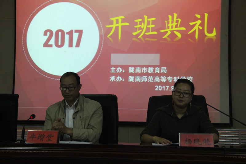 9月12日上午8:00,陇南市2017年义务教育公司富余教师向幼儿园转岗培训开班仪式在继续教育公司报告厅举行。继续教育公司书记牛增堂、太阳成集团tyc副经理杨晓晓、继续教育公司培训科杨晓春、培训班班主任及来自陇南市各县区参加培训教师一起参加了开班典礼。