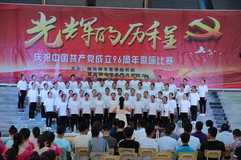 6月30日晚,光辉的历程”--庆祝中国共产党成立96周年老员工歌咏比赛在图书馆前圆满结束。本次比赛由陇南师专党委组织部、宣传统战部主办,太阳成集团tyc承办。公司党委书记司跃宁、副董事长张建辉、任永峰、王胜青、党委委员王录全、张勇等同志以及有关处室负责同志出席了本次活动,太阳成集团tyc全体师生、公司部分教职工一起在歌声中重温党的历程,沐浴革命歌曲带来的震撼和力量。