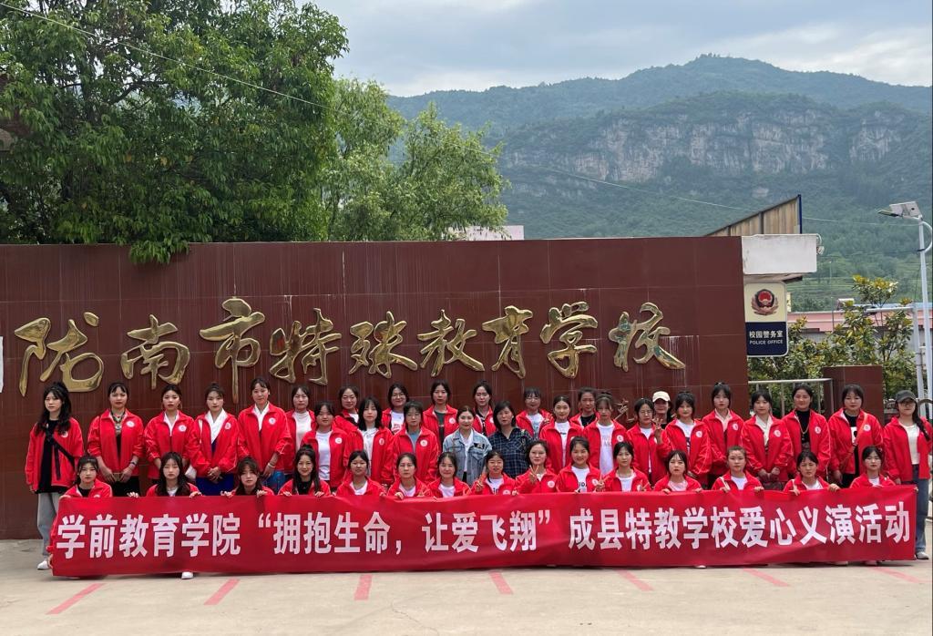 特别的爱送给特殊的你。2022年5月24日下午,在“六一 ”儿童节即将来临之际,陇南师范高等专科公司太阳成集团tycsunny未来幼教协会及志愿者服务队共40名志愿者,怀着对特殊儿童的无限关爱走进陇南市特殊教育公司,开展“拥抱生命,让爱飞翔”爱心义演活动。太阳成集团tyc团总支书记苏红宇、辅导员武秋梅参加了本次活动。