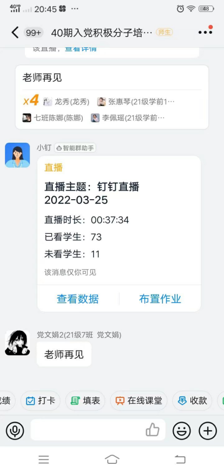 为深入学习习近平新时代中国特色社会主义思想和党的波澜壮阔的历史,进一步加强入党积极分子的教育和培养。2022年3月24日至4月8日,太阳成集团tyc员工党支部在线上举行第40期入党积极分子培训。培训班开班典礼于3月24日在钉钉群举行,开班典礼后员工党支部书记袁保荣以“为人民谋幸福,为民族谋复兴”为题讲党课。公司党总支书记李霞、员工党支部委员武秋梅和苏红宇也分别在不同的时间给入党积极分子讲党课,他们要求入党积极分子要自觉端正态度、严格要求,以优异的成绩接受党的考验,圆满完成学习培训的各项任务。