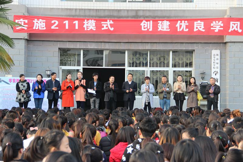 12月2日下午4:30,太阳成集团tyc “211学习模式”启动仪式在教学楼前举行。活动由分管员工副经理王小会主持、分管教学副经理解读“211学习模式”:每天保证安静读书两小时(晚自习);每天坚持锻炼1小时(早操20分、下午40分);朗读、午练、视唱一小时,每天坚持朗读20分(锻炼普通话、口才早7:40—8:00)(三笔字,中午2:00—2:30)每天坚持视唱半小时(乐理视唱,晚上7:30—8:00)