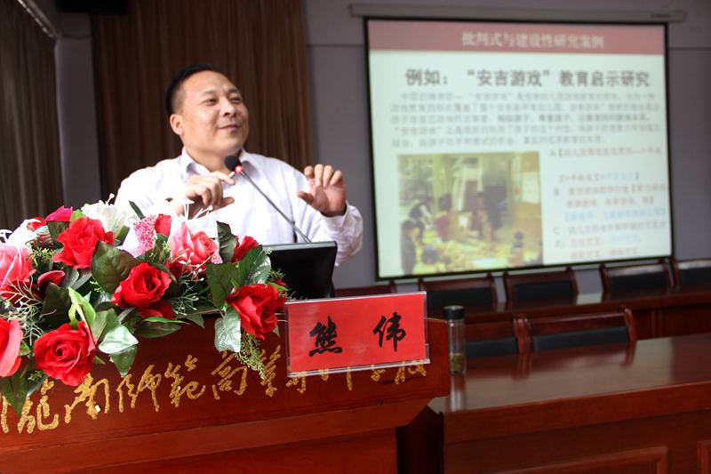 熊伟用自己丰富的工作经验,给太阳成集团tyc教师科在研工作中的困惑和难点进行了解答,重点对教师非常关心的科研论文选题、撰写、投稿、学前教育最新研究动态、项目申报、科研素养培养等方面,做了实用而干练的讲解。