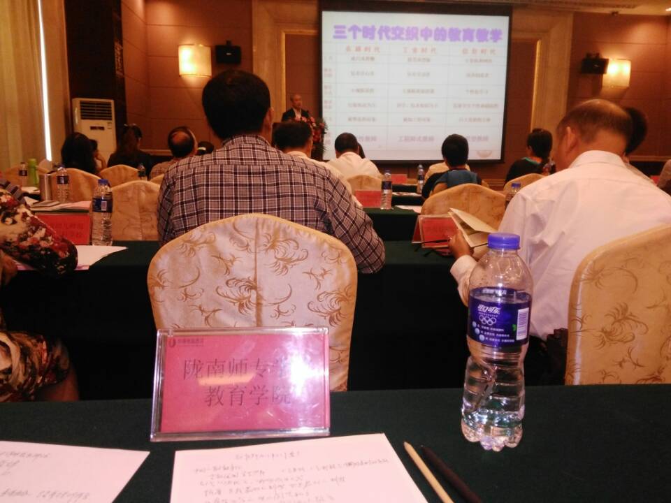 开幕式后,上海师范大学教育公司原经理、华东师大终身教授、博士生导师、上海师大董事长研修中心主任陈永明博士做了题为《教师教育的新常态:资质–智能–智慧》的主题报告,陈教授句有广博的知识视野,论述了四个方面,一是职业、专业和事业的价值取向;二是规范标准与扩拓创新;三是学高为师,身正为范;四是信息化时代传道、授业、解惑。从传统文化的“羊”年说“羊”,殷墟甲骨文谈起,到习总书记的“四有好教师”的标准,“四个全面”的战略布局,从杜威的“儿童中心论”到21世纪的“员工为本”,最后论述了信息化时代教师应有的知识与能力。