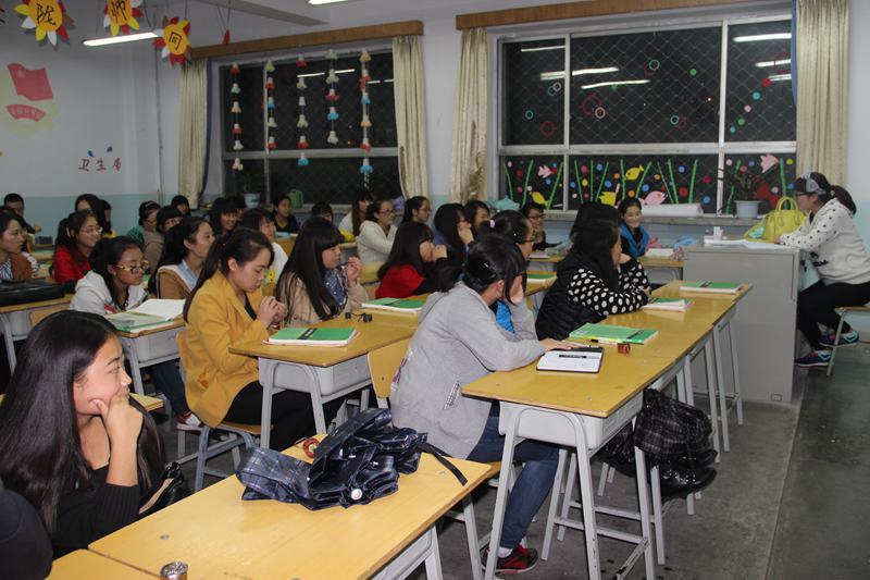 经验分享、互动交流、学弟学妹感悟发言、主持老师的总结四个环节中,12级员工用自己的经历实话实说,把自己对幼教老师职业岗位的责任、幼教工作的价值以及对现实社会的感悟毫无保留的分享。对于实习的艰辛他们微笑着娓娓道来,对出门在外的思乡和饮食不习惯他们懂得了适应,对于实习生活的收获与眷恋他们自信而成熟。通过实习,不论是对专业素养的提升,还是学会与人相处与合作;不论是对生活的体验还是面对实习挫折中的坚强,他们都谈笑风生。实习前他们都是父母眼中的宝贝、象牙塔里面的佼佼者,一年实习生活的历练,他们都长大了、成熟了、自信了,更像经验丰富的教师了;讲台上他们侃侃而谈,语言优美生动,重点突出,一件件实习中的案例让大一的员工听的入神入境。在敬佩和感动中学弟学妹争相向学姐们请教自己专业学习和对将来实习的种种困惑。